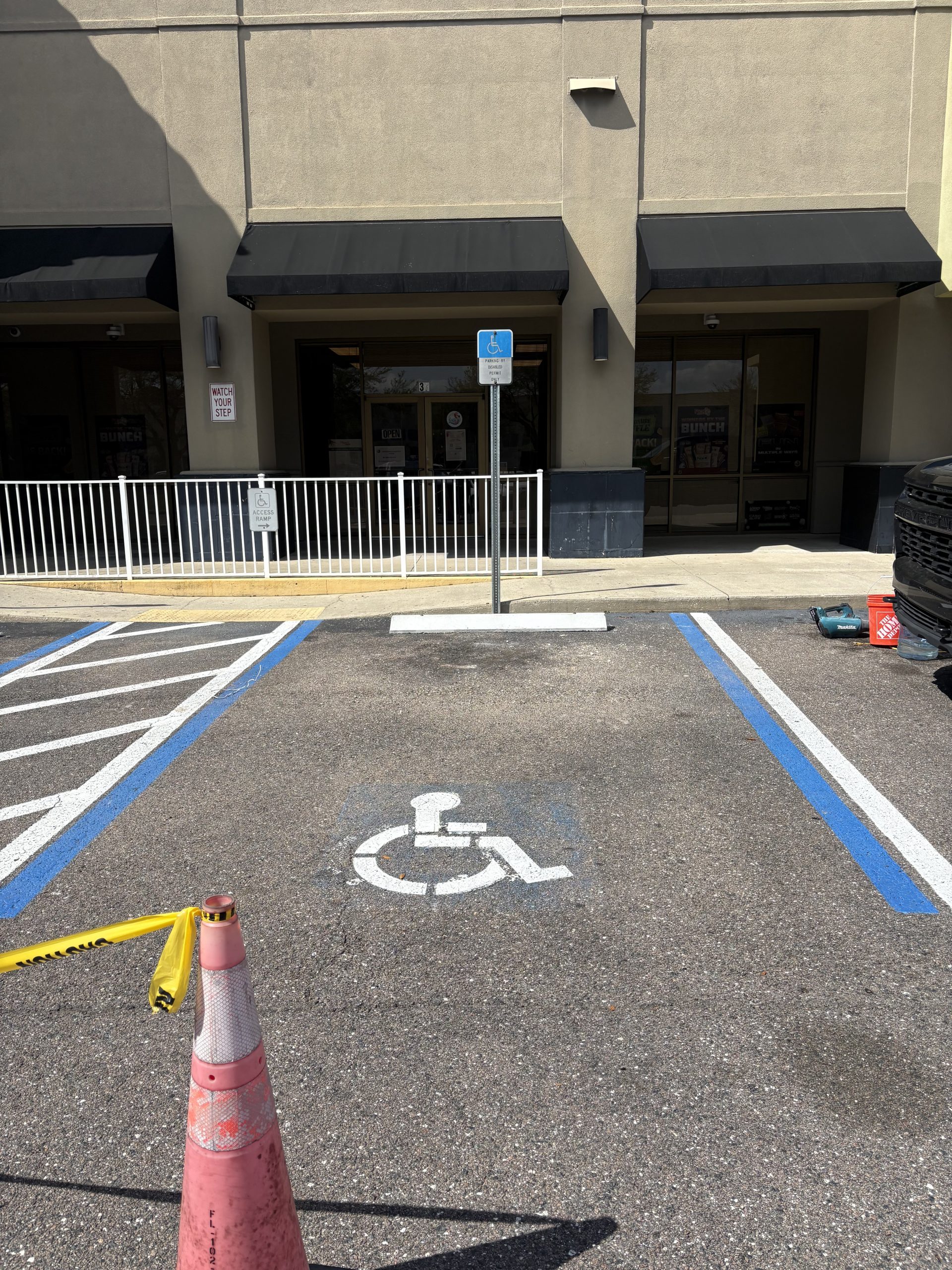 We removed the damaged posts and installed new ones. Also we installed the car stops in front of the signs.