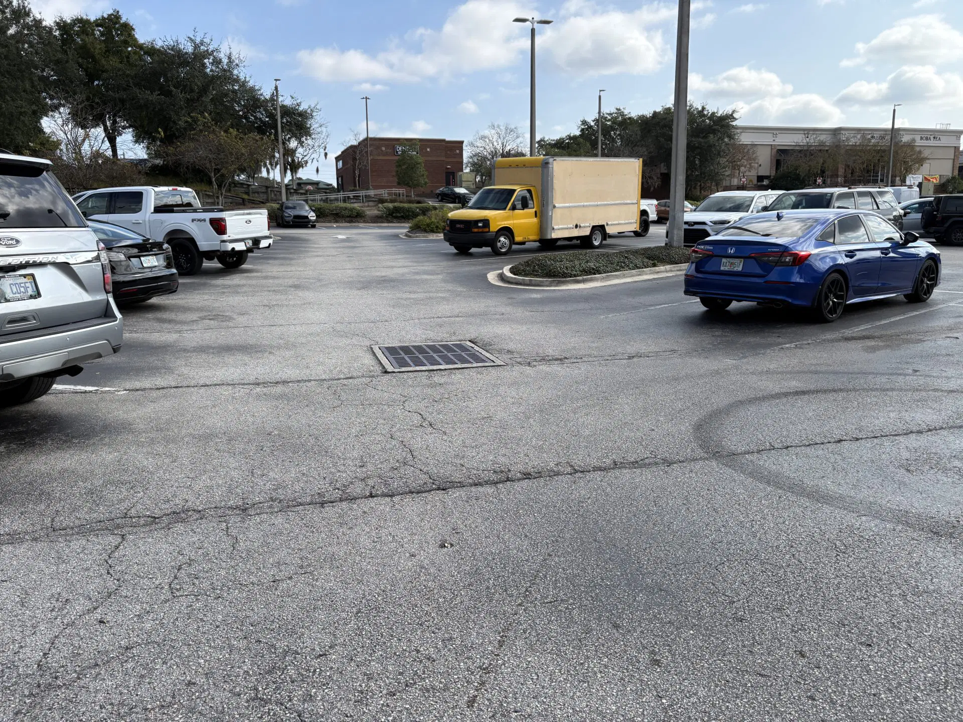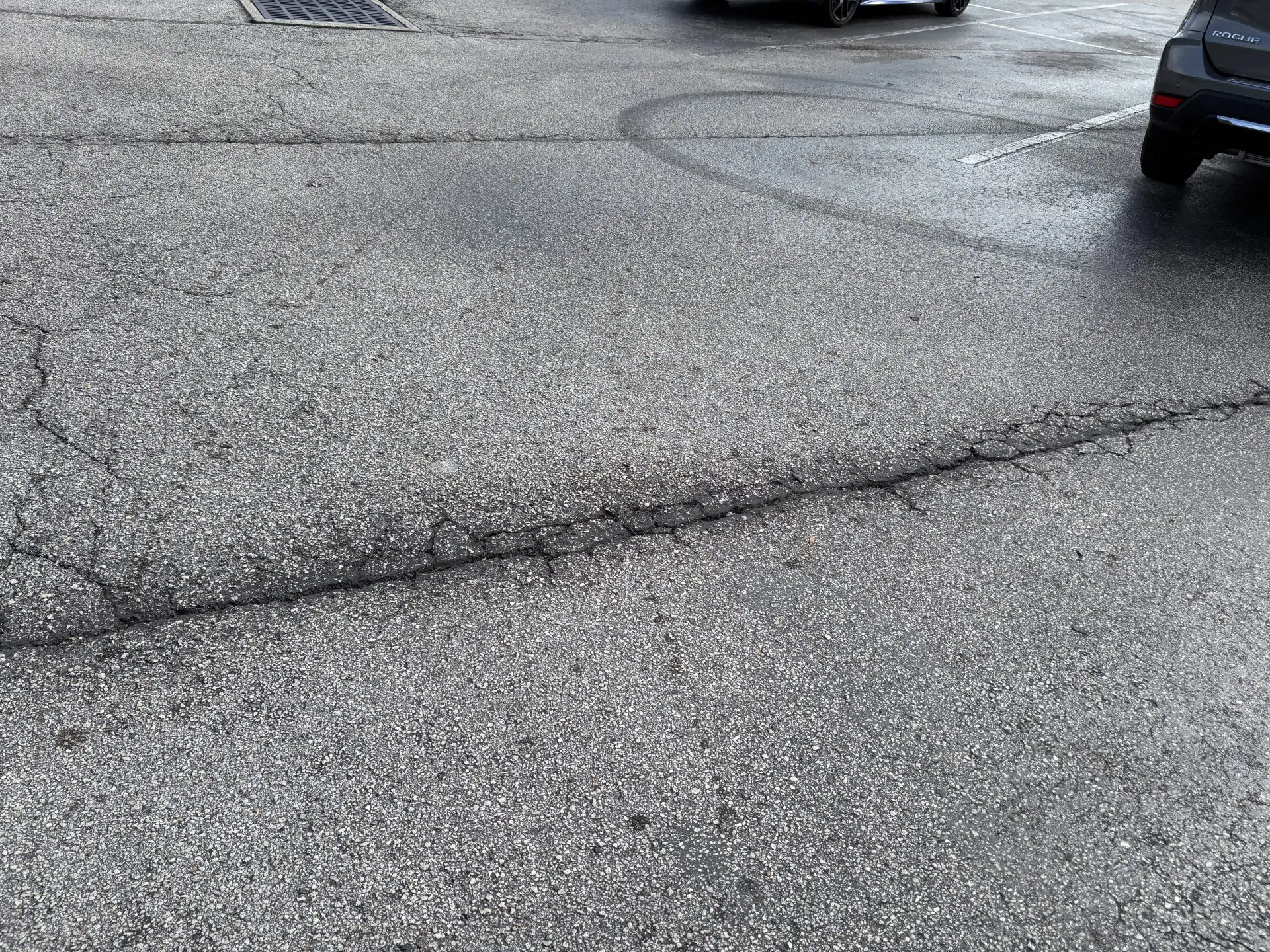All of these pictures are in the same general area in front of UPS. I don’t want to cut out and patch, which creates more seams, which is where asphalt fails the fastest. I’d like to see if you can fill them with Quick Patch (it’s like regular crack filler but thicker). It can be troweled on to fill in and make level.