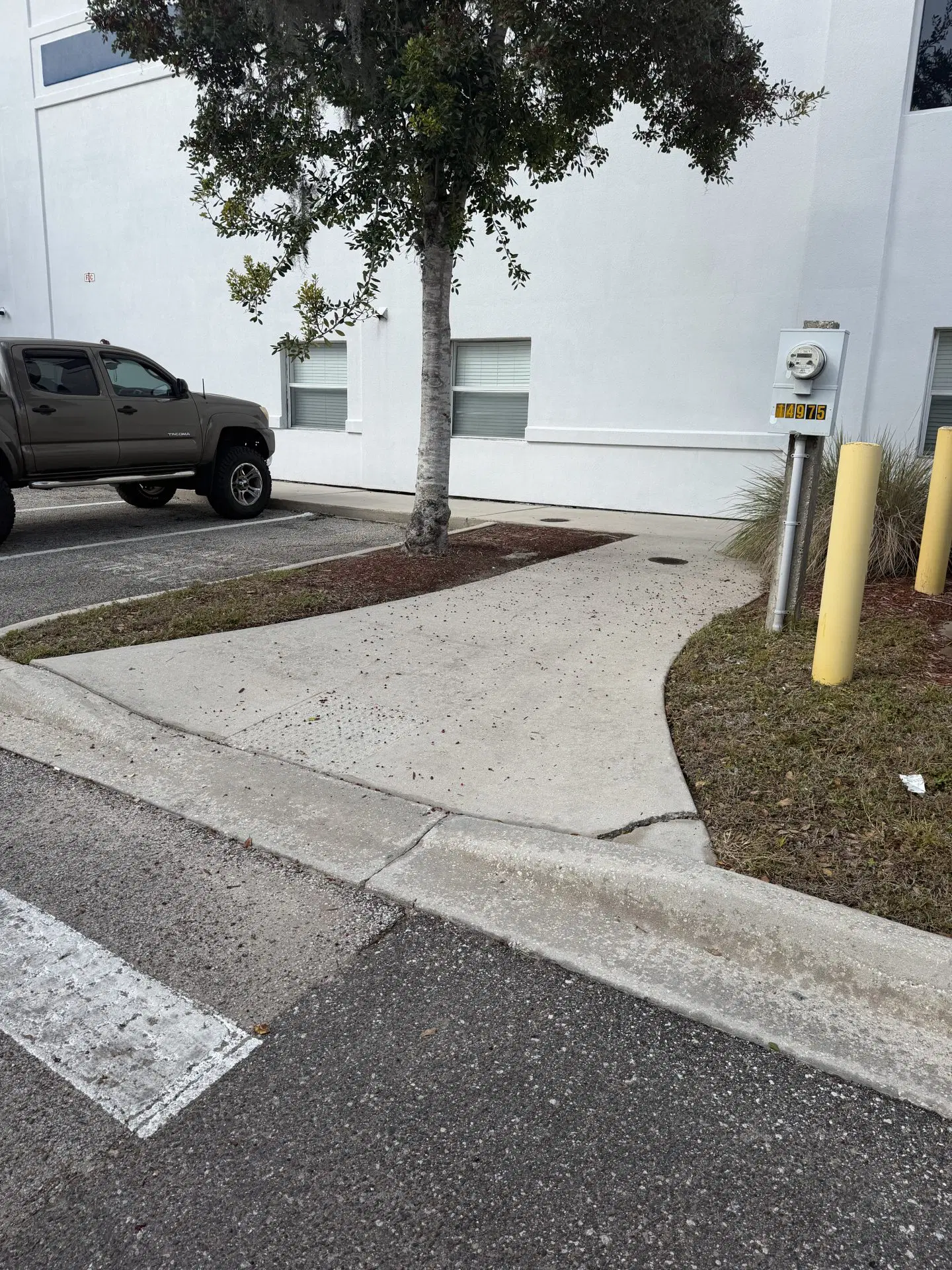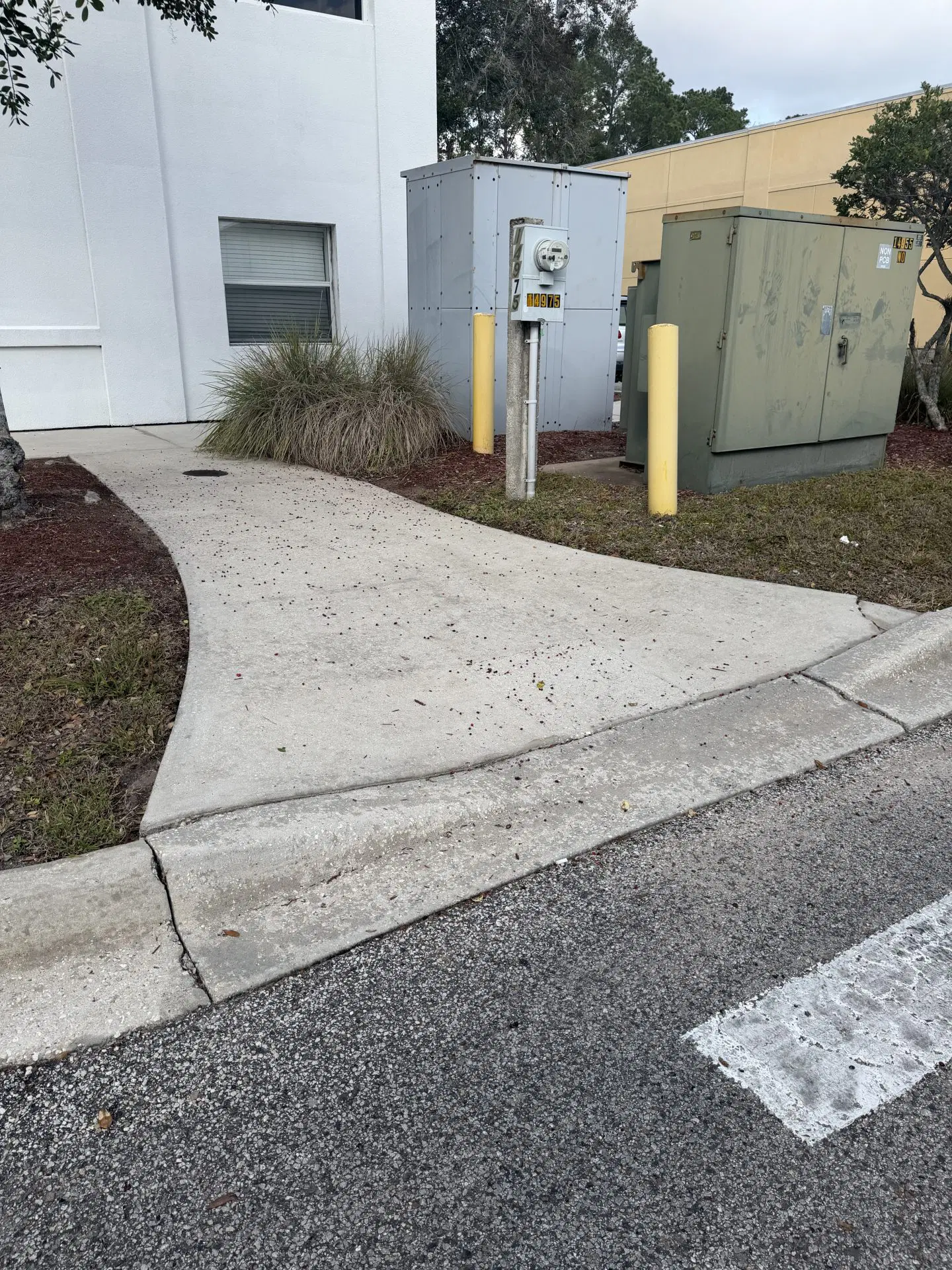Sidewalk is cracked in front of building – Facing the building on the front right corner resulting in a possible trip hazard.