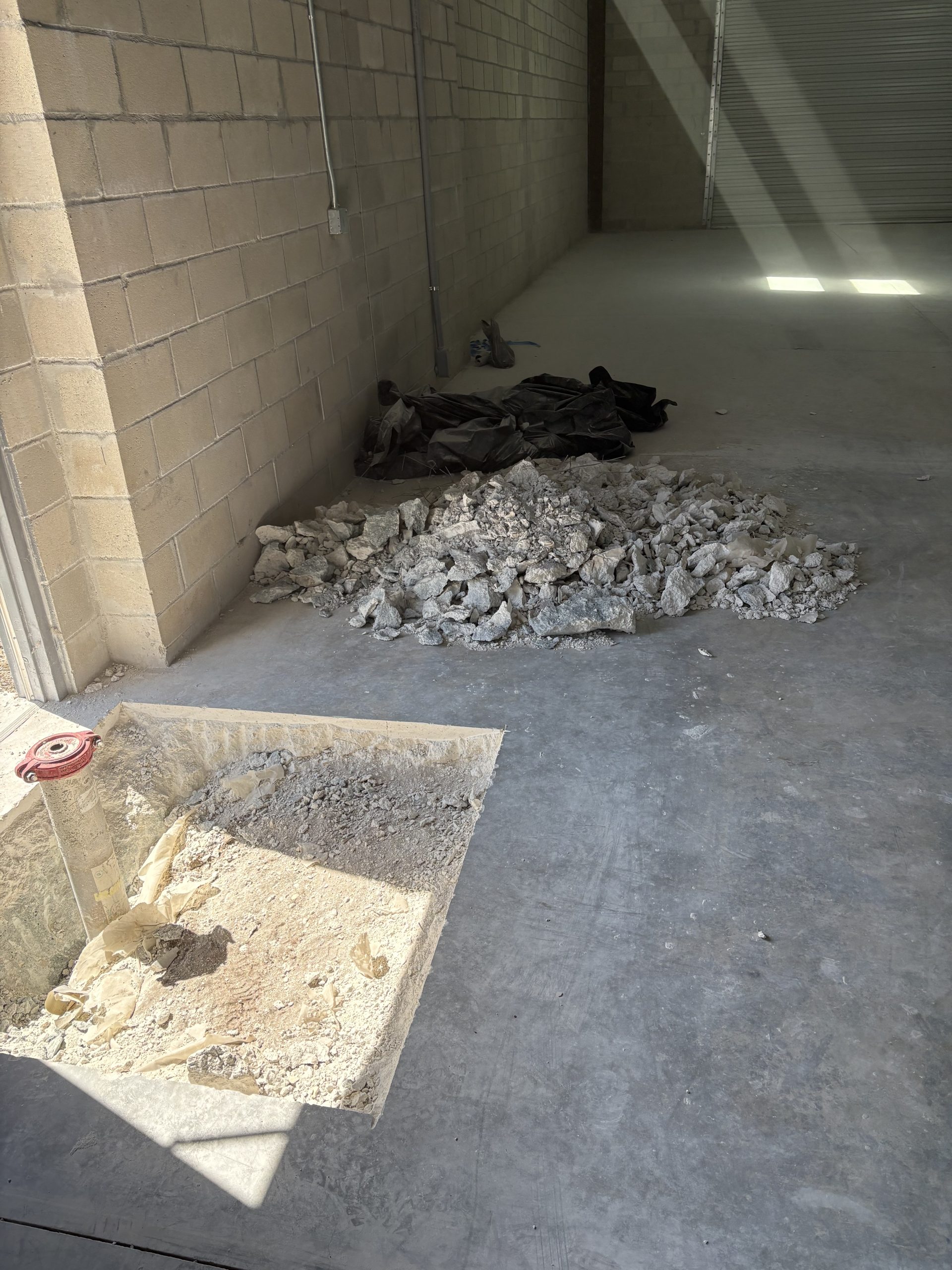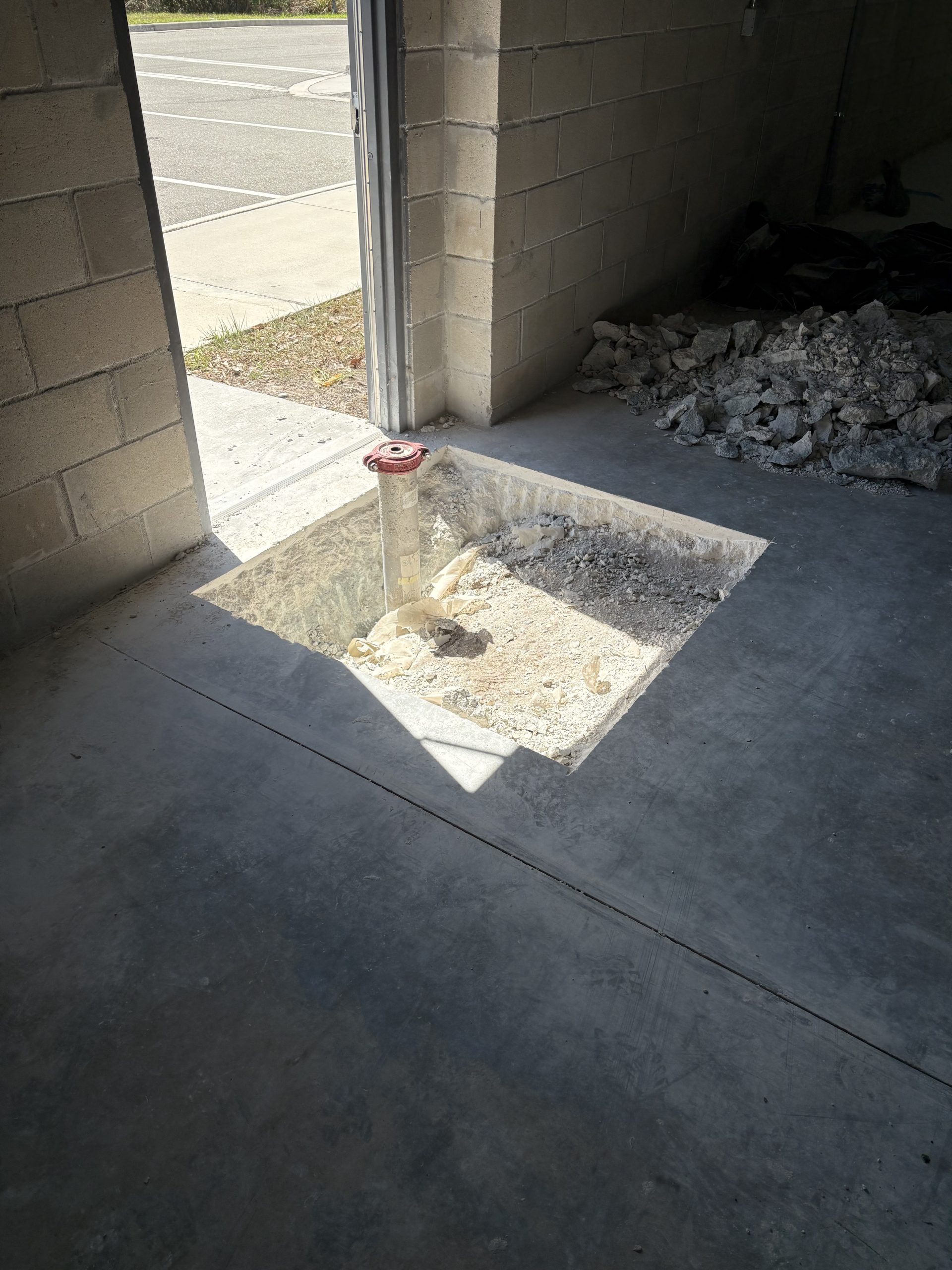 We cut out the square around the pipe and demo the concrete.