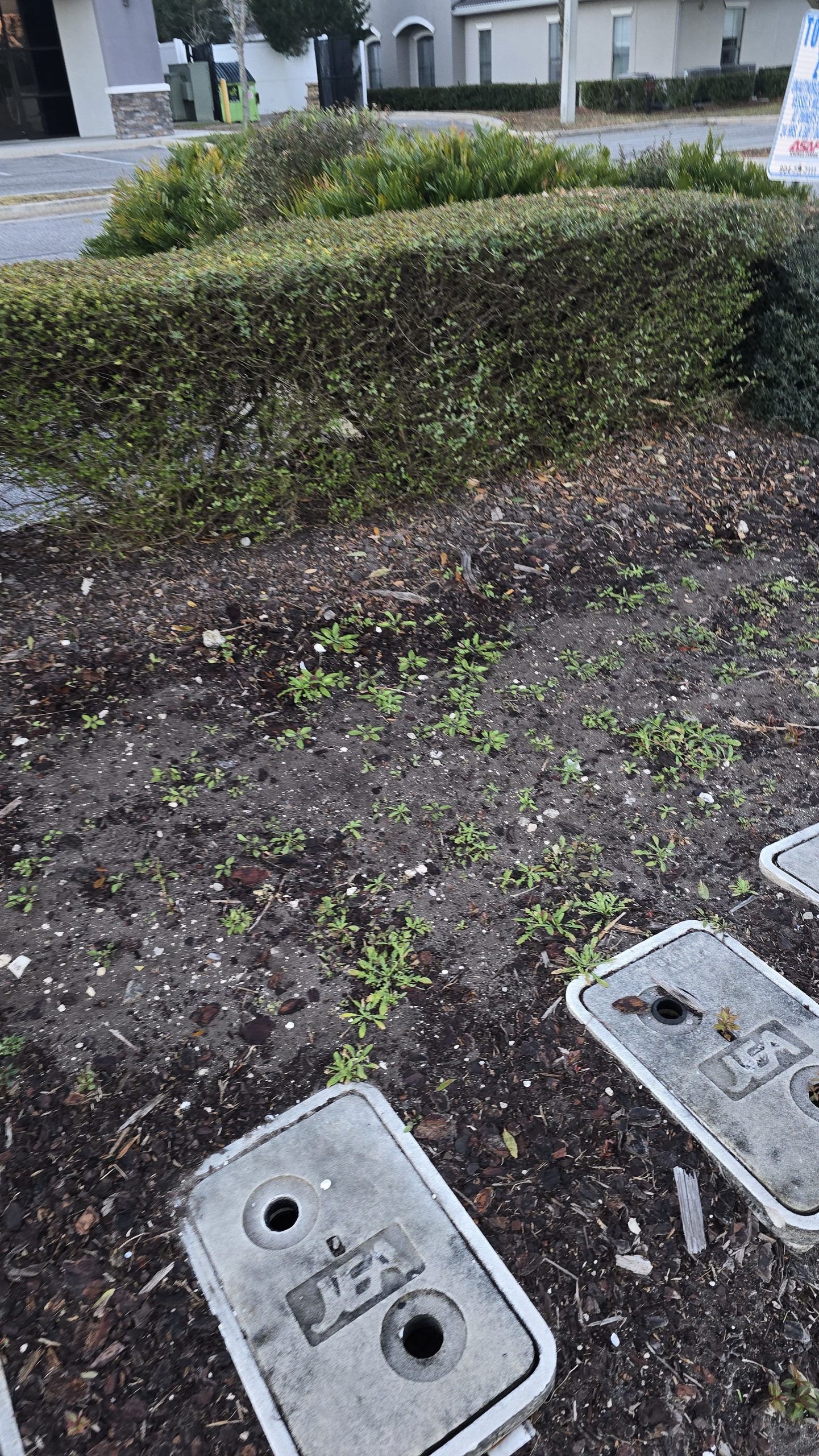 All flower beds/landscaping free of weeds w/spray applied